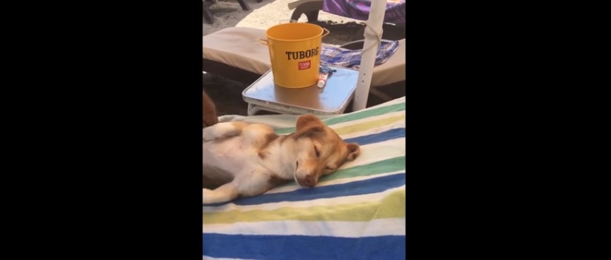 유튜브채널 Rumble Viral?에서는 해변으로 휴가를 간 개의 영상을 공개했다. 영상 속 개는 파라솔 아래 선베드에서 눈을 지그시 감고 주인의 손길에 몸을 맡기고 있다. ?