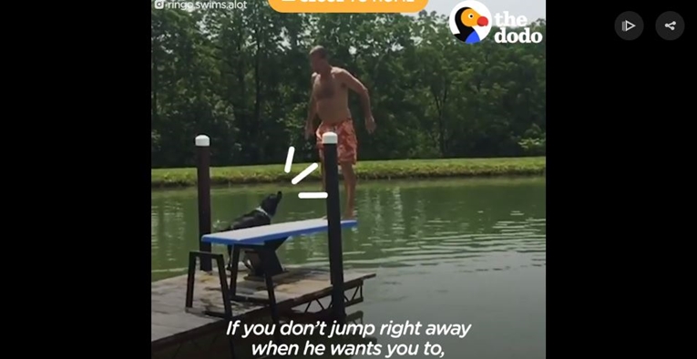 물가로 자신있게 점프하는 링고의 다이빙 실력은!